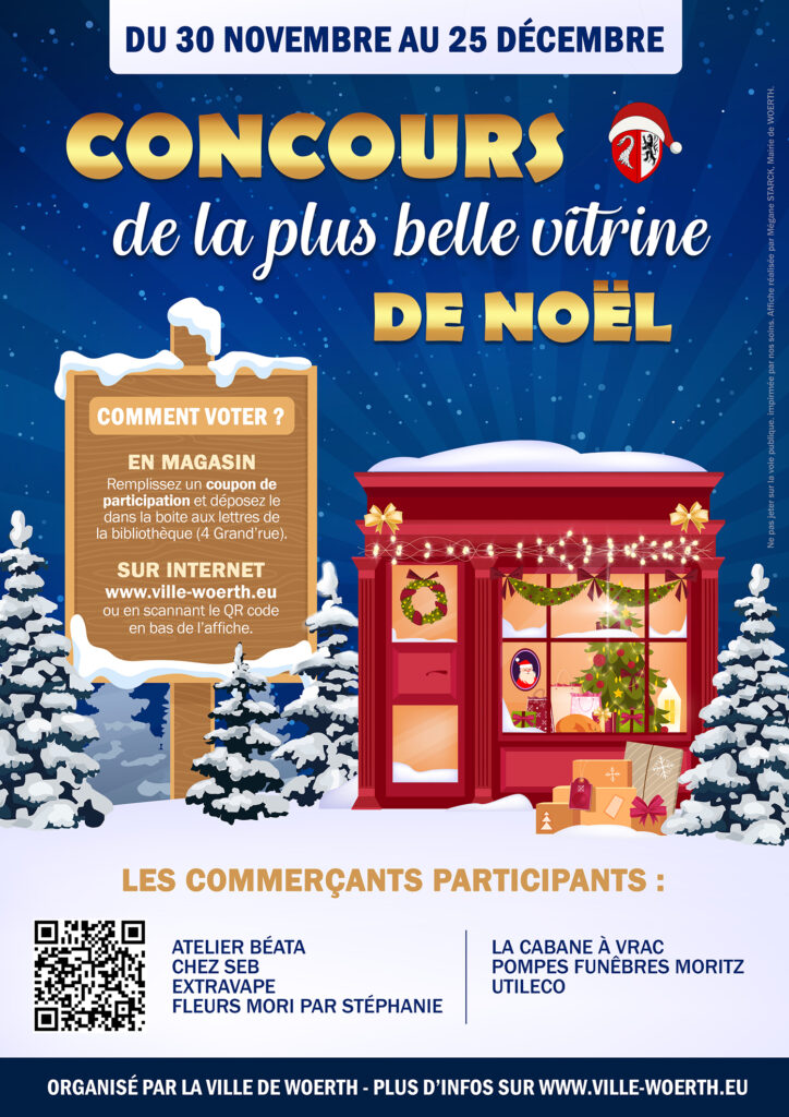 Jusqu’au 25 décembre, votez pour votre vitrine préférée ! C’est l’occasion de parcourir Woerth en famille ou entre amis pour y découvrir les magnifiques décorations que vos commerçants ont réalisés. 2 possibilités pour voter :